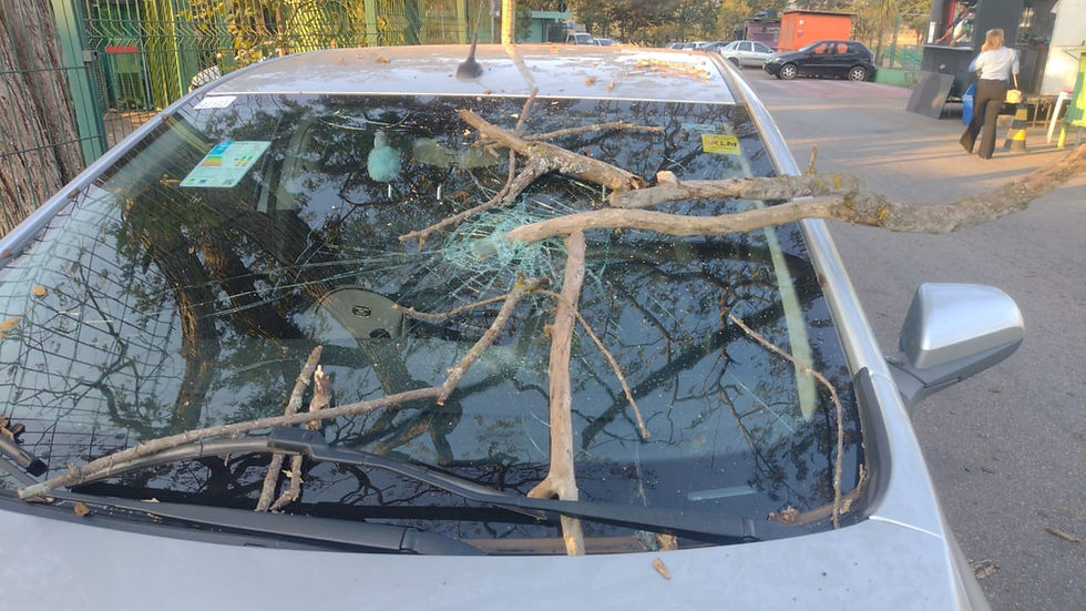Na tarde desta terça-feira (25), um galho de árvore caiu sobre um veículo estacionado em frente à Unidade de Pronto Atendimento (UPA) de Brumadinho, causando consideráveis danos ao automóvel. O galho, de grandes proporções, quebrou o para-brisa e amassou a lataria do veículo.